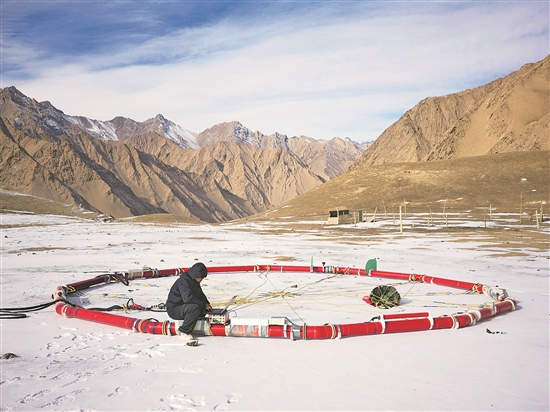 1月11日,科研人员在新疆和田地区测试航空大地电磁探测系统。