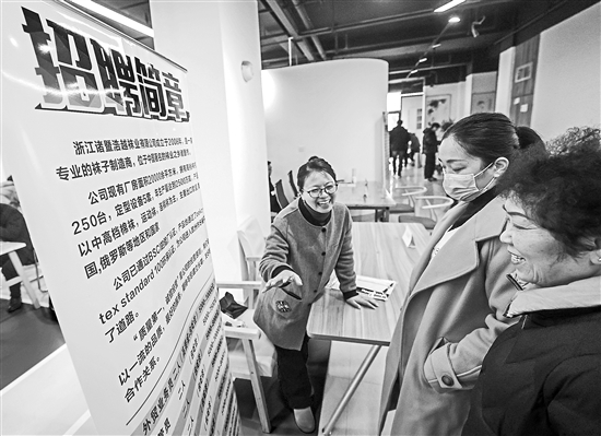 为进一步优化“家门口”就业创业环境,有效解决公租房家庭部分群体就业技能不足、就业渠道狭窄等问题,近日,浙江省诸暨市暨阳街道凤凰社区文化家园举办新春首场公租房小区春节专场招聘会,吸引了2700余名居民参加。新华社记者 徐昱 摄