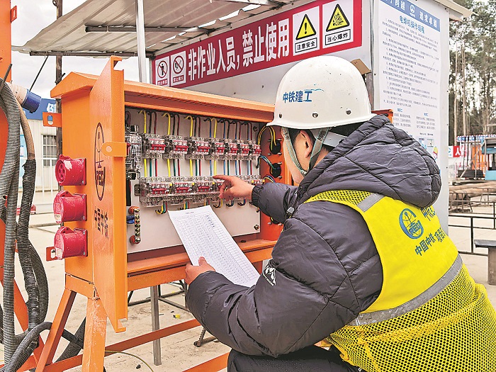 节后,中铁建工深汕站项目全面检查安全生产、复工复产准备情况等,全覆盖开展安全教育及交底,迈好“安全第一步”,推动项目奋战“开门红”。图为技术人员正在进行安全检查。本报通讯员 姚李龙 摄