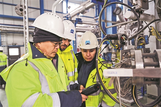近日,中企承建的土耳其图兹湖地下天然气储库扩建项目核心工程完成机械竣工。该项目地处安纳托利亚高原,计划将图兹湖地下天然气储库的储存容量由原来的12亿立方米扩建至54亿立方米,建成后将大幅提高土耳其天然气运储能力。图为中土两国工程师在土耳其阿克萨拉伊省的图兹湖地下天然气储库扩建项目地面场站查看设备。新华社记者 刘磊 摄