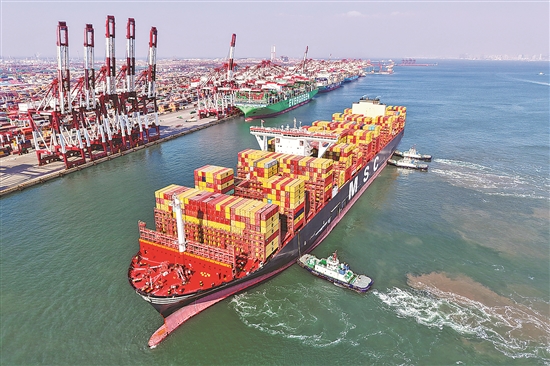 2025年以来,青岛港开通2条到东南亚、地中海方向的“一带一路”航线,合计新开4条国际集装箱航线,加快世界一流海洋港口建设。新华社发 (俞方平 摄)