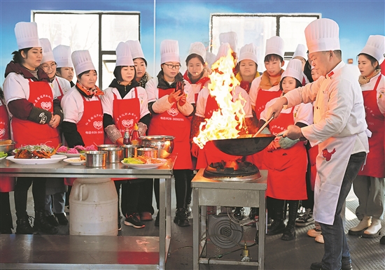 2月25日,在四川省眉山市仁寿县腾达职业培训学校,培训老师正在为学员进行烹饪教学。近年来,仁寿县总工会结合就业市场需求,依托当地职业技能培训机构,免费为有就业需求的下岗人员、返乡农民工等群体提供烹饪、家政、电商等技能培训,并推荐就业。