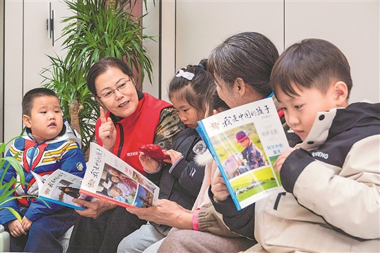 2月19日,72岁的退休列车长崔磊正带着孩子们在活动室读书。在内蒙古鄂尔多斯准格尔旗蓝天街道铁北社区,她每天来到社区活动室,为6名儿童辅导作业、组织读书活动。作为当地推行的“共享奶奶”计划首批志愿者,她和社区10余位老人,为双职工家庭提供免费托育服务。吕昊俊 摄/视觉中国