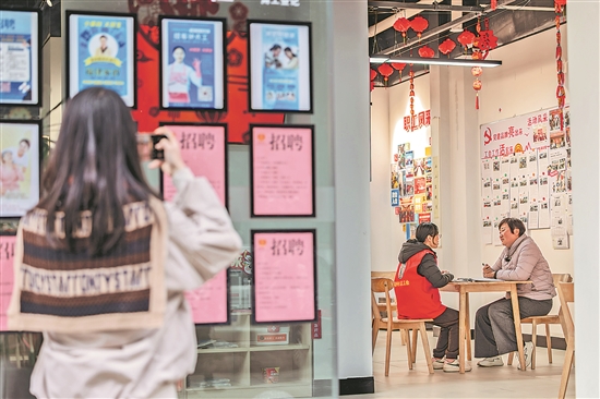 2月21日,福建福州,佳好佳(福建)生态环境科技有限公司项目管理员侯艳梅代表(右一)在工会驿站走访调研,了解基础就业人员的工作生活情况。今年全国两会上,她将继续关注基础就业人员的职业成长,使劳动者就业有平台、维权有途径、学习有渠道。本报记者 李润钊 摄