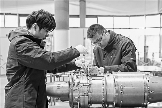 2月28日,浙江华擎航空发动机科技有限公司的工作人员在宁波市江北区的车间内装配无人机航空发动机产品。