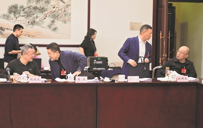 3月6日,在全国政协工商联界小组会议后,北京市工商联副主席、北京纳通科技集团有限公司董事长赵毅武委员,天津市工商联主席娄杰委员,四川省工商联副主席、海天集团董事长费功全委员,美锦能源董事长姚锦龙委员(前排从左至右)继续交流。