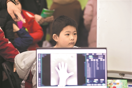 3月15日,在浙江省湖州市德清县洛舍镇卫生院,就诊儿童在进行骨龄测量。