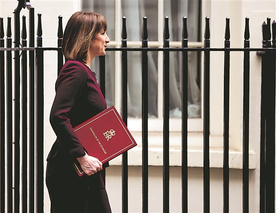图为当地时间3月26日,在英国伦敦,英国财政大臣里夫斯前往议会公布春季预算案。