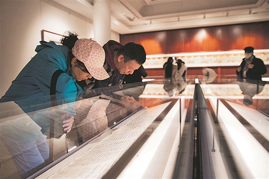 日前,观众在北京展览馆观看“如是莫高”敦煌艺术大展。