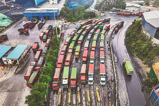 4月6日,贵州省黔西市甘棠镇内的黔西电厂,运煤车辆正在等待卸载煤炭。春耕春种以来,用电量增加,贵州省黔西电厂有序调配电煤运输和储存,确保春耕春种用电。本报通讯员 周训超 摄