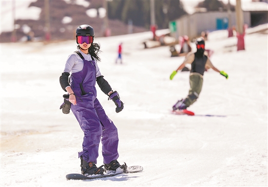 这是游客在新疆丝绸之路山地度假区滑雪(2025年4月5日摄)。新华社记者 王菲 摄