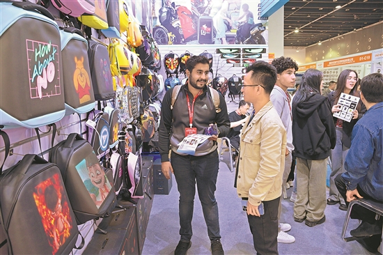 此次展会设汽车零配件、精品等专区标准展位1300个,吸引了来自广东、河北等全国各地参展企业1300家。预计到会专业采购商2万人次,同比增长50%,其中各国外商5000多人。图为外商正在采购车载背包。本报通讯员 吕斌 摄
