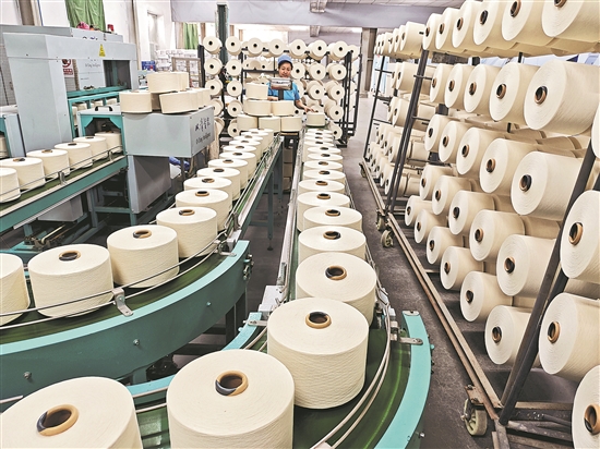 4月1日,工人在位于新疆阿克苏地区阿瓦提县阿瓦提镇库木巴格社区的新疆精一纺织科技有限责任公司纺织车间作业。连日来,该公司开足马力生产3500吨的纺纱订单产品,销售浙江、广东等地,及时供应市场需求。包良廷 摄