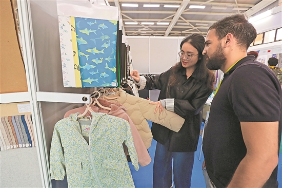 第八届阿尔及利亚国际纺织、服装、皮革及设备展览会于当地时间4月21日至23日在该国首都阿尔及尔举办,吸引了来自中国、土耳其等国家的约200家参展商参展。图为近日,人们在阿尔及利亚首都阿尔及尔参加第八届阿尔及利亚国际纺织、服装、皮革及设备展览会。新华社发