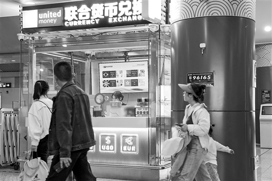 4月28日,行人经过北京地铁8号线王府井站货币兑换店。