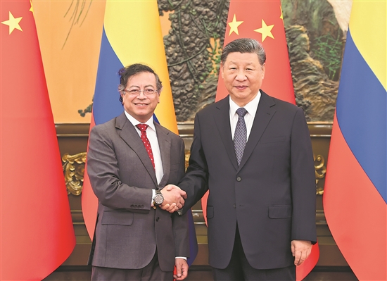 佩特罗表示,哥伦比亚与中国的友好关系源远流长,哥方期待深入发展对华关系。双方要深化政治互信,加强相互支持。共建“一带一路”,拓展贸易、基础设施、新能源、人工智能等领域合作,改善人民生活。当前,国际局势复杂多变,个别国家唯利是图的做法不利于世界,各国应团结应对。哥方愿同中方密切配合,捍卫国际公平正义,维护发展中国家共同利益。