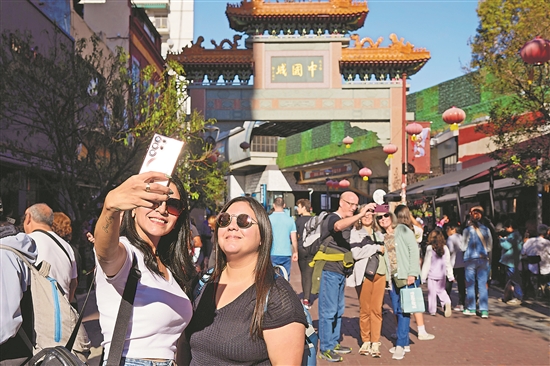 近日,市民在阿根廷布宜诺斯艾利斯的“中国城”牌坊前自拍。新华社记者 孟鼎博 摄