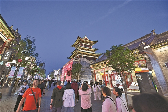 夜幕降临,太原市钟楼街、食品街等特色街区及汾河两岸流光溢彩、游人如织。近年来,太原市不断丰富“夜经济”消费业态,开展多种夜间活动,打造集美食、观光、购物等于一体的“夜经济”消费圈,丰富市民游客夜生活。新华社记者 詹彦 摄