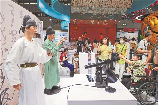 在本届文博会,全球65个国家和地区、305家海外展商线上线下参展,国际化占比达20%。其中,线下参展海外展商132家,线上参展海外展商173家;覆盖65个国家和地区,包括线下参展国家和地区40个,线上参展国家和地区25个。新华社记者 梁旭 摄