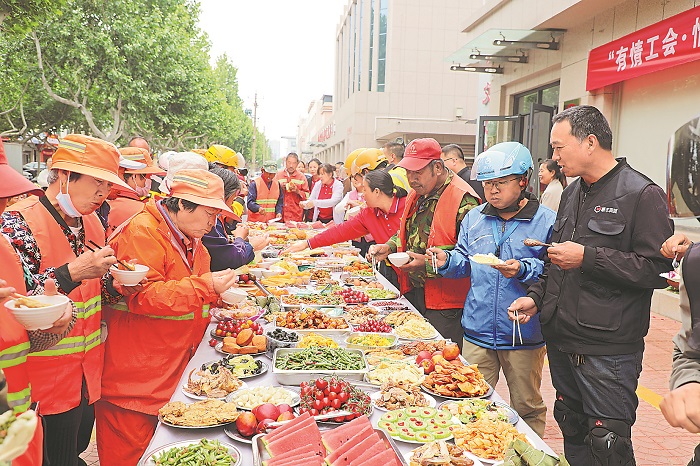 近日,在山东省滨州市博兴县工人文化宫,“有情工会·情暖三代”工会会员父母集体生日会暨“粽情五月天·爱聚百家宴”活动举行,工会会员父母、新就业形态劳动者、环卫工人等100余人参加活动。活动由博兴县总工会联合博昌街道孵化中心工会联合会举办。