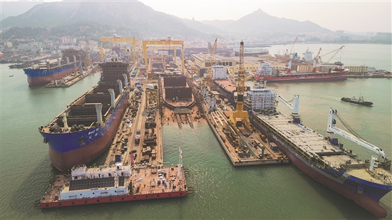 目前,山东省荣成市造船企业厂区内一派繁忙景象,工人们抓紧建造各类大型船舶。近年来,荣成市积极推动船舶工业高质量发展,目前已具备年制造整船100万载重吨,修船1000艘次的产能,产品包括集装箱船、多用途重吊船、豪华客滚船、冷藏运输船、散货船、渔船等。