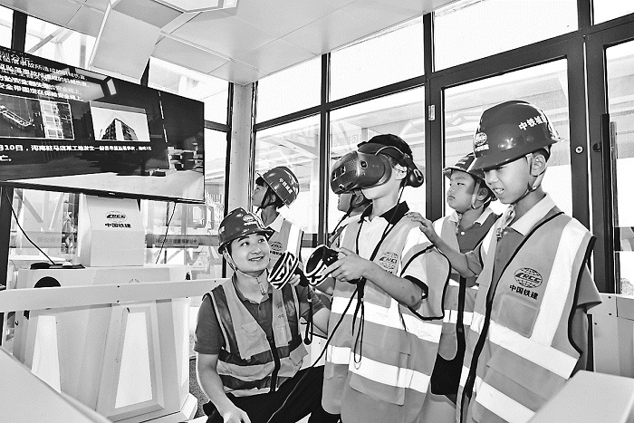 5月26日,中铁城建集团总承包分公司工会在湖南长沙智谷光年项目开展“六一”安全工地课堂。10名建筑工人子女走进施工现场,通过VR安全实景体验、亲子互动教学等环节,在工地上共度别样儿童节。孩子们戴上安全帽模拟高空坠物场景,父母手把手传授安全知识,让安全教育融入亲情,为流动的童年增添温暖。本报通讯员 杜进才 摄