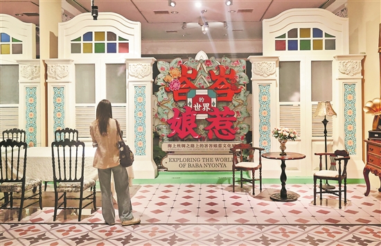 日前,在北京首都博物馆举行的“峇峇娘惹的世界——海上丝绸之路上的峇峇娘惹文化展”上,市民参观南洋风客厅。自15世纪起,移民到东南亚的华人历经数代人的奋斗,将中华文化与当地文化相融,形成了独具特色的“峇峇娘惹”文化。此次展览是首都博物馆“世界文明交流互鉴”系列展览的组成部分。展览通过百余件精选文物及多元展示手段,系统梳理峇峇娘惹社群的历史脉络与文化面貌。