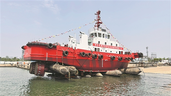 近日,在河北秦皇岛西港花园港池,随着一声悠扬的汽笛鸣响,中交一航局五公司为安哥拉建造的4800马力拖轮滑过17节气囊顺利下水。该船是河北省为安哥拉建造的首艘拖轮,开工至下水仅用6个月,较常规建造周期缩短30%,以“中国速度”创造了现代造船工业的佳绩。