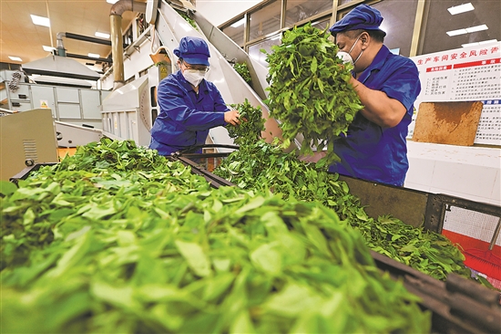 6月7日,工人在海南省农垦五指山茶业集团股份有限公司保亭金江五指山分公司茶厂加工茶叶。