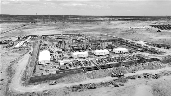 图为该输变电工程线路起点——灵武330千伏升压站(无人机照片)。