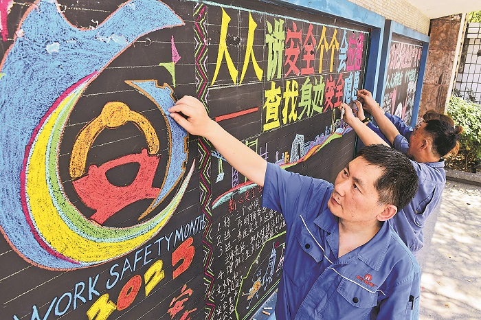 自开展“安全生产月”活动以来,安徽淮北矿业集团淮北选煤厂组织以“人人讲安全、个个会应急——查找身边安全隐患”为主题的安全知识手绘板报评比活动,大力营造人人讲安全,人人要安全,人人抓安全,人人会安全的浓厚氛围。童军 摄