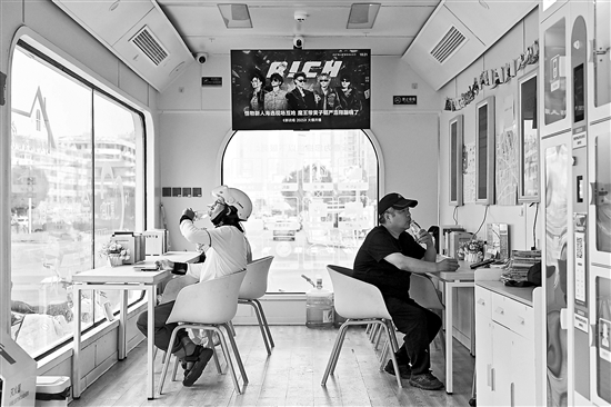 6月9日,几名户外劳动者在天津市河西区文化中心工会驿站休息。近年来,天津市总工会积极整合基层工会服务场地,着力推动工会驿站建设,努力提高站点的覆盖率、知晓率、使用率。截至目前,天津全市已建成6000余个工会驿站,为环卫工人、快递小哥、出租车司机等各行业的户外劳动者提供饮水、饭食加热、临时休息、手机充电、如厕等服务。