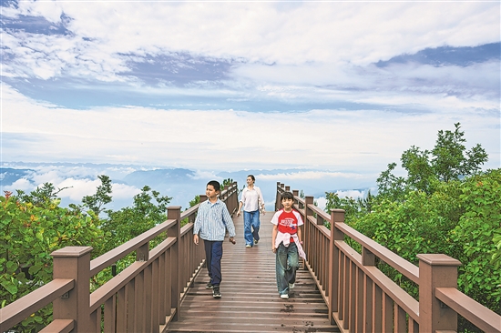 6月9日,游客在重庆奉节三峡之巅景区游览。