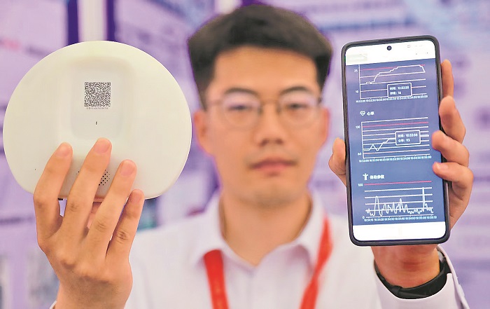 6月11日至12日,2025年“挑战杯”河北省大学生课外学术科技作品竞赛终审决赛在东北大学秦皇岛分校举办。本届竞赛吸引了全省113所高校的7万余名学生参与。图为参赛选手展示呼吸睡眠检测仪。