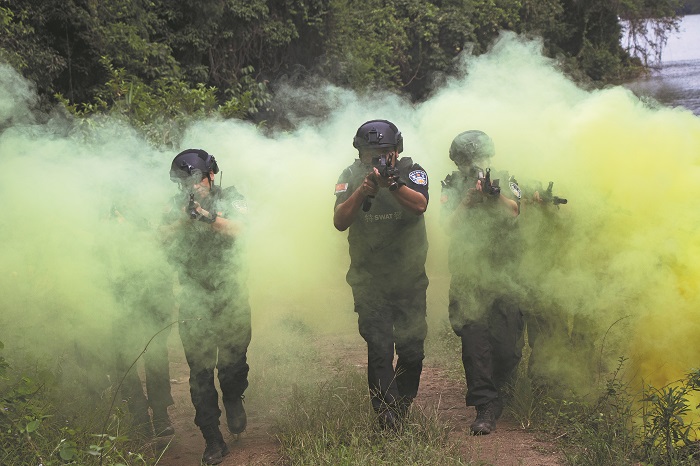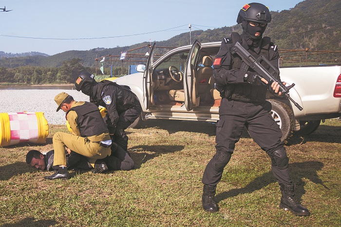 2024年12月25日,老挝孟莫,“守望-2024”联合打击湄公河流域违法犯罪演练现场。
