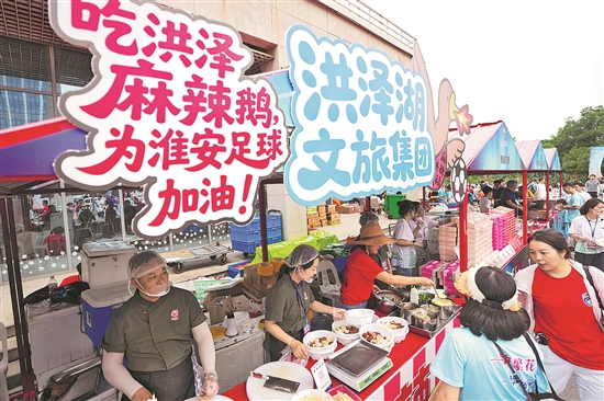 当日,江苏省淮安市在江苏省城市足球联赛第四轮淮安队对阵南京队比赛期间,在淮安奥体中心周边打造淮安主场比赛配套市集,营造热烈的赛事氛围,提升赛事附加值。