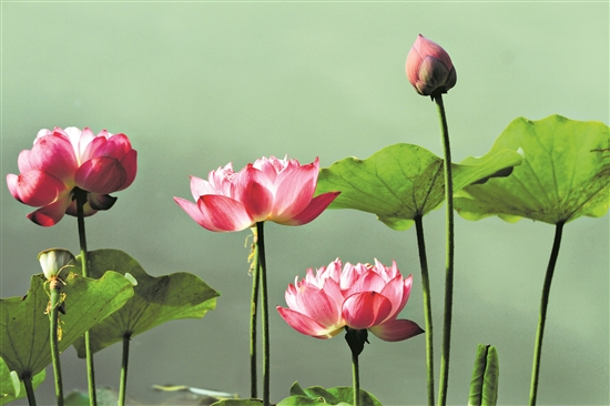 6月12日,江苏省淮安市古典园林各式荷花竞相绽放,粉荷擎露而绽,碧叶翻浪成波。视觉中国 供图