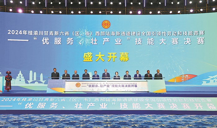 2024年桂渝川甘青新六省(区、市)西部陆海新通道建设全国引领性劳动和技能竞赛开幕。