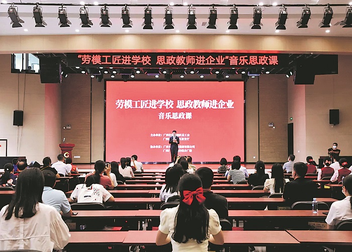 2022年9月21日,“劳模工匠进学校 思政教师进企业”活动音乐思政课走进广西交通投资集团有限公司。