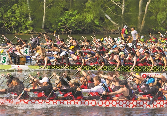 当地时间6月14日至15日,加拿大多伦多举办2025年国际龙舟节。