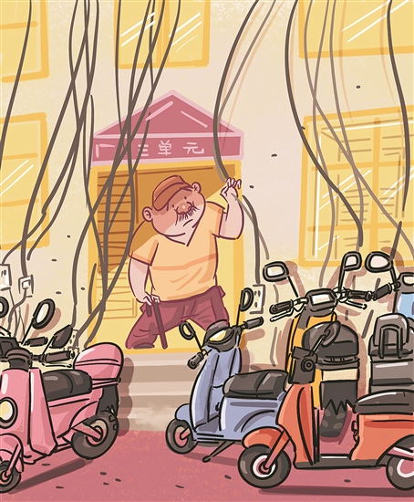 在不少地方,或因充电桩数量不足,或认为价格不合理,一些居民选择从楼上“空降”电源线为电动自行车充电。这存在巨大安全隐患,比如会增加居民楼整体用电负荷,无“过充”保护装置易引发电池起火或爆炸等。终结“盘丝洞”乱象,要以典型事故做警示、加大对居民的安全教育力度,更关键的是要通过增加充电设施等措施,给居民更充分的“弃线选桩”的理由。眼下,各地电动自行车保有量不断攀升,希望更多地方能及时排查和行动,尽快为电动车充电这件民生小事找到更优解。
