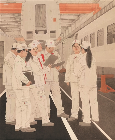 大国工匠——高铁青春 (国画) 河北 郭雅梅