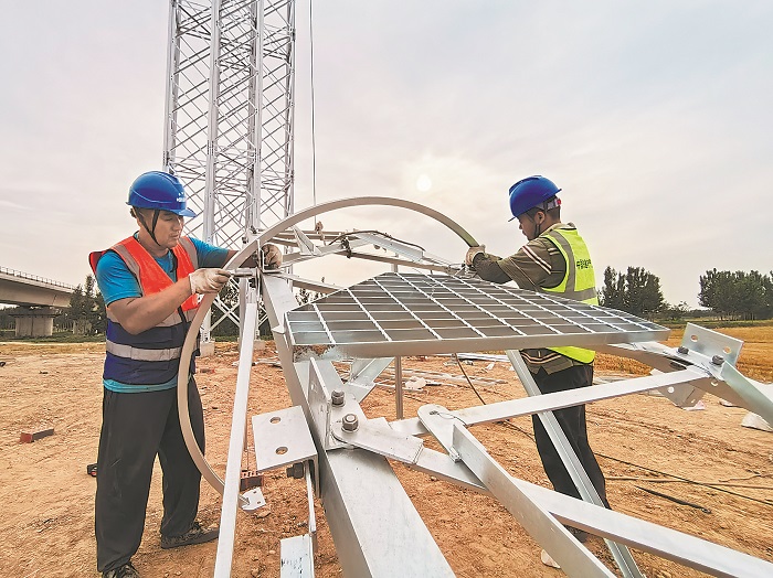 6月24日,由山东铁投集团鲁南高铁公司投资建设、中国铁建电气化局承建的济滨高铁项目,首座通信铁塔在滨州市成功组立,标志着济滨高铁四电工程建设全面启动,项目建设迈入新阶段。本报通讯员 张婷华 王富民 摄