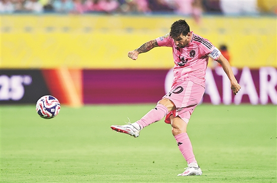 北京时间6月24日,在美国迈阿密进行的2025年国际足联俱乐部世界杯(世俱杯)A组小组赛中,美国迈阿密国际队2比2战平巴西帕尔梅拉斯队,两队同积5分,携手小组出线。图为迈阿密国际队球员梅西在比赛中射门。