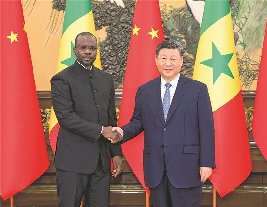 习近平强调,中塞双方要坚定支持彼此走独立自主的发展道路,加强党际交往和治国理政交流互鉴,不断夯实政治互信根基。中方愿同塞方密切合作,落实好中非“十大伙伴行动”,实施更多惠民工程,鼓励中国企业参与塞内加尔新能源、数字基础设施建设等领域投资,做合作共赢的伙伴。中塞文化各具特色,要以2026年“中非人文交流年”为契机,密切人员交往,加强文化、教育、旅游、体育、青年等领域交流合作,不断拉近两国人民距离,做文明互鉴的朋友。双方要坚定捍卫以联合国为核心的国际体系,践行真正的多边主义,坚持共商共建共享的全球治理观,共促世界和平繁荣进步。