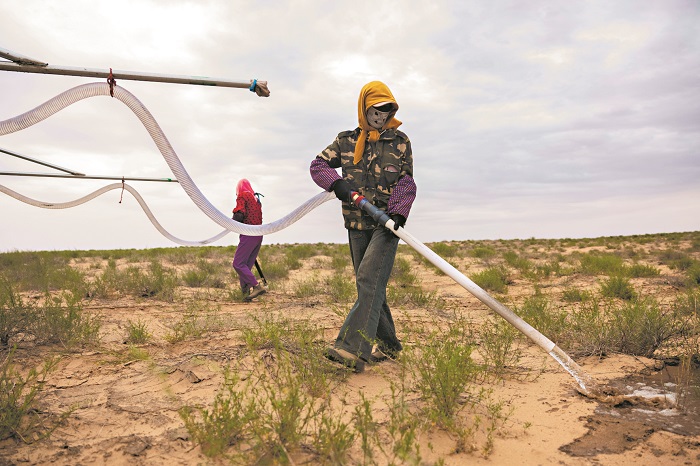 给北极的冰山装上一台发动机运往阿拉善——这是喜剧电影《西虹市首富》中,满脑子创业梦的保安提出的方案。现实中,冰山搬不来,但人们却用愚公移山的精神,用另一种方式改变着阿拉善。