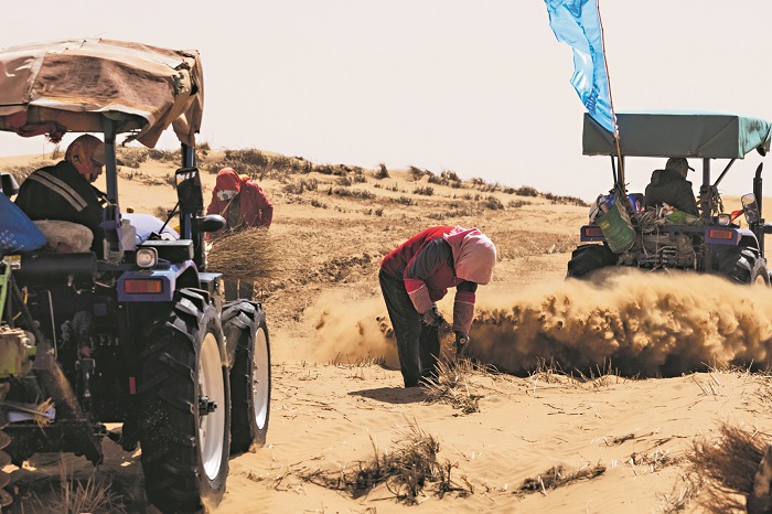 越来越多的机械化作业,为阿拉善打赢治沙攻坚战注入科技力量。