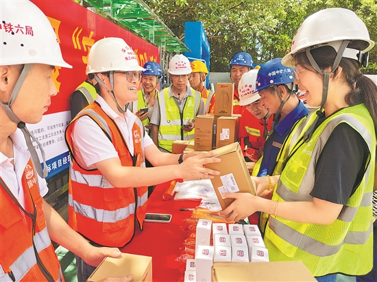 日前,一场融合线上线下的安全生产知识挑战赛在中铁六局广州公司深江铁路4标项目部工地上开展。活动通过积分兑换礼品的形式提升工友参加活动的积极性,让“人人讲安全、个个会应急——查找身边安全隐患”的理念在趣味比拼中深入人心。图为工友兑换礼品现场。