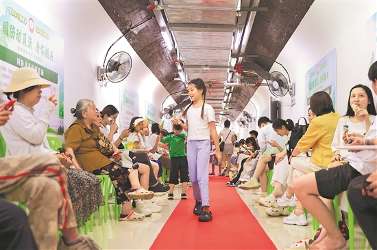 7月2日,人们在南京北极岩人防工程里纳凉。