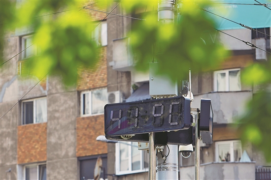 罗马尼亚近期高温天气持续,包括首都布加勒斯特在内的多个地区白天最高气温超过40摄氏度。图为近日,布加勒斯特街头的温度计显示气温达到41摄氏度。